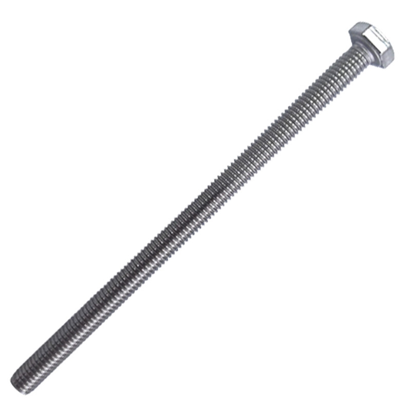 Материалом для болта служит нержавеющая сталь класса A2. У изделия есть цилиндрический стержень c полной резьбой и шестигранная головка. Шляпка передает крутящий момент от ключа к крепежу при завинчивании. Для создания прочных резьбовых соединений крепеж используется в комбинации с шайбой и гайкой или завинчивается в отверстия с нарезанной резьбой. Чтобы исключить электрохимическую коррозию, шайбы с гайкой делаются из коррозионно-устойчивой стали либо нейтральных полимерных материалов.
