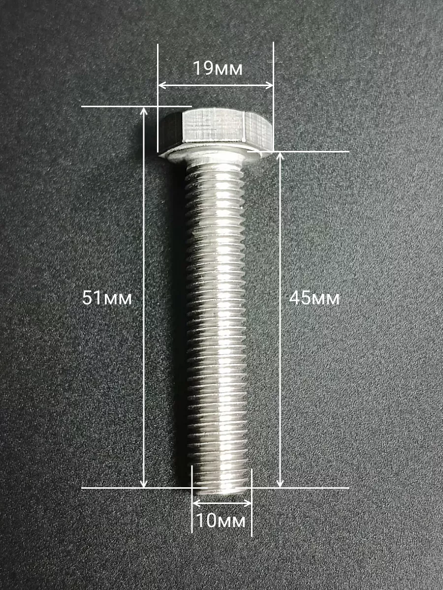 Болт нержавеющий 10х45 мм DIN933 с гайкой и шайбой, 10шт