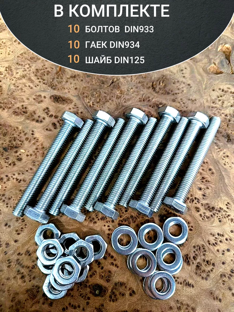 Болт нержавеющий 10х70 мм DIN933 с гайкой и шайбой, 10шт