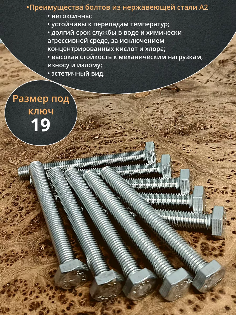 Болт нержавеющий 12х100 мм DIN933 10шт