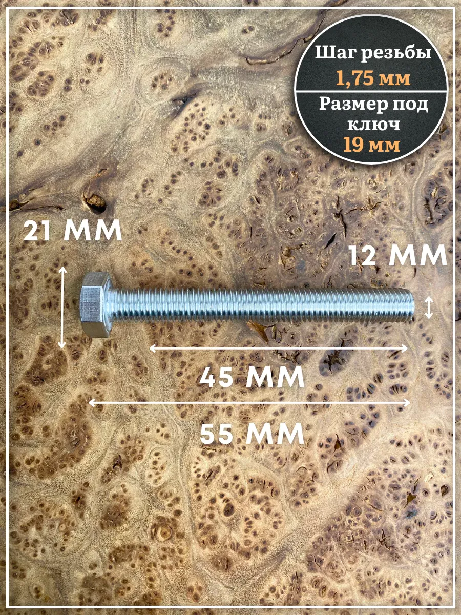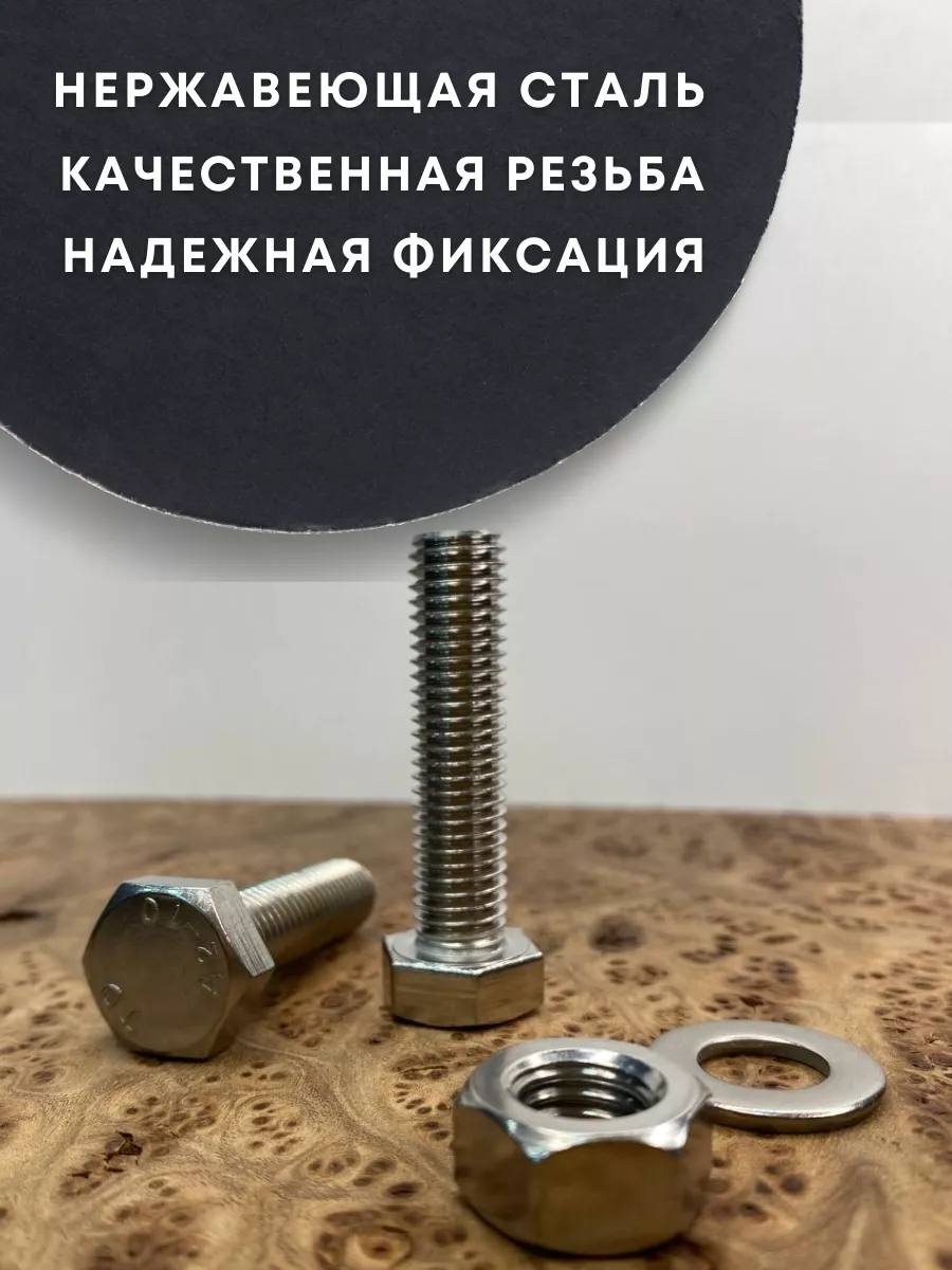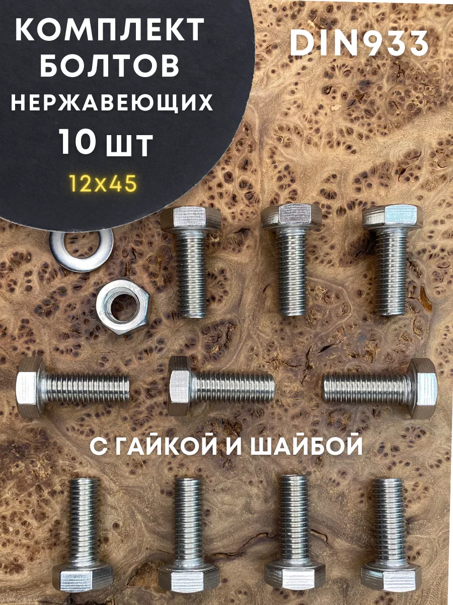 Болт нержавеющий 12х45 DIN933 с гайкой и шайбой, 10 шт.