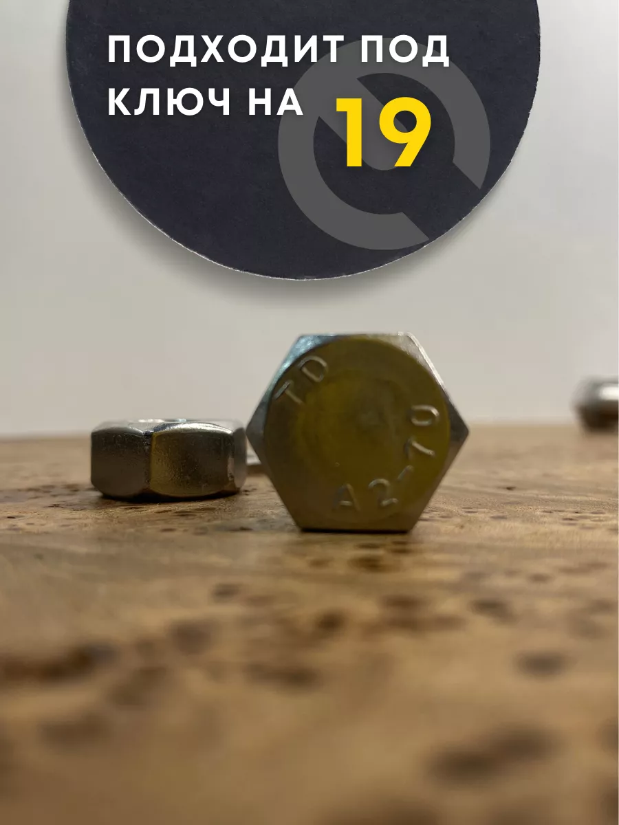 Болт нержавеющий 12х50 DIN933 с гайкой и шайбой, 10 шт.