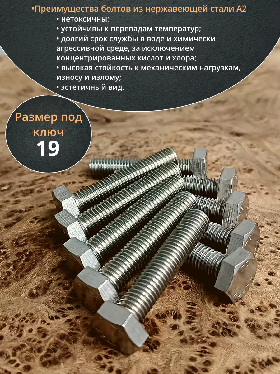 Болт нержавеющий 12х50 мм DIN933 10шт