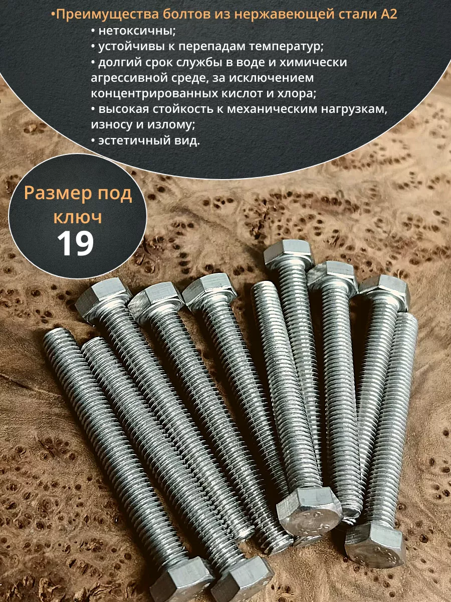 Болт нержавеющий 12х60 мм DIN933 10шт