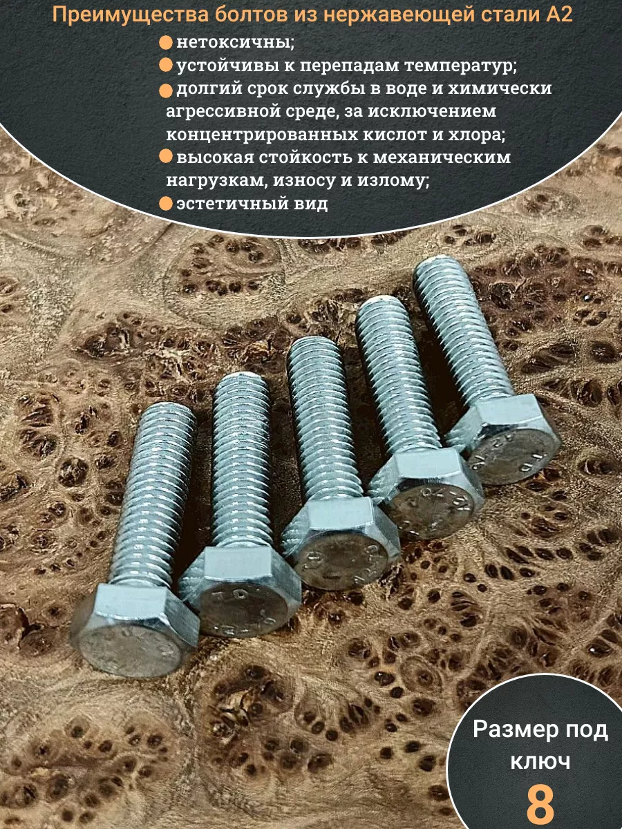 Нержавеющая сталь данной марки повышает прочность болта, который выдерживает динамические усилия и вибрацию. Изделие монтируют в помещениях и вне их. Крепеж имеет практически неограниченный ресурс работы, на который не влияет воздействие воды и изменений температуры воздуха.
