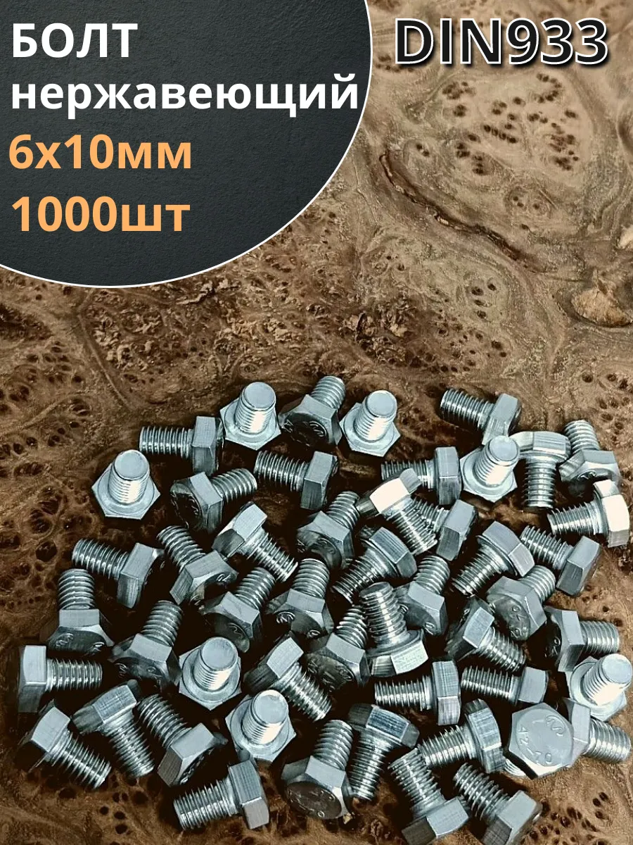 Болт нержавеющий 6х10 мм DIN933 10шт АС1300601093D07 1 шт.
