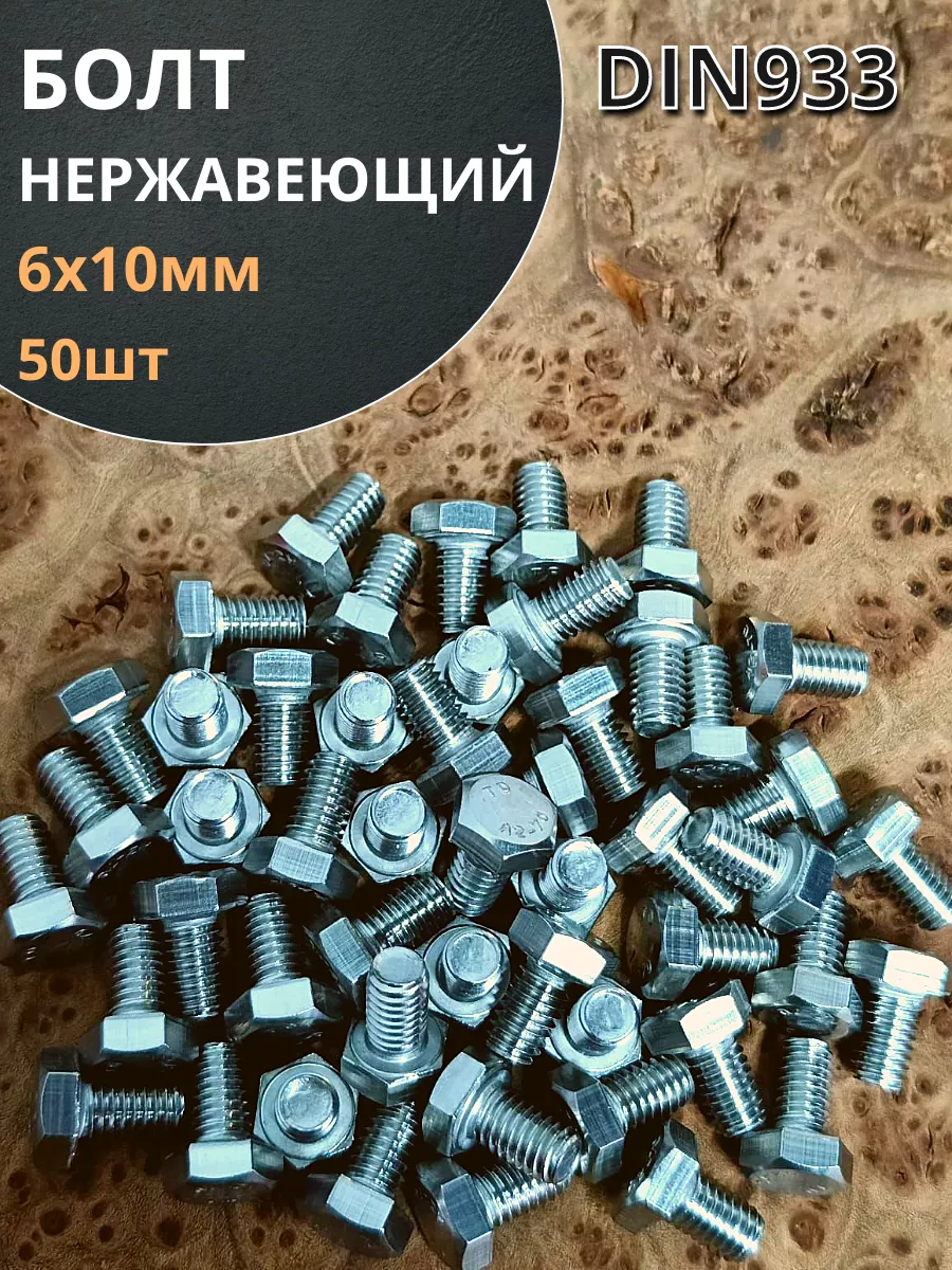 Болт нержавеющий 6х10 мм DIN933 , 50шт