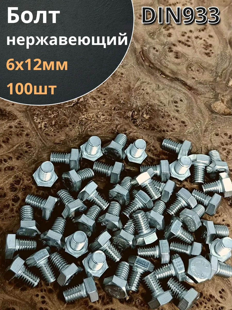 Болт нержавеющий 6х12 мм DIN933 100шт