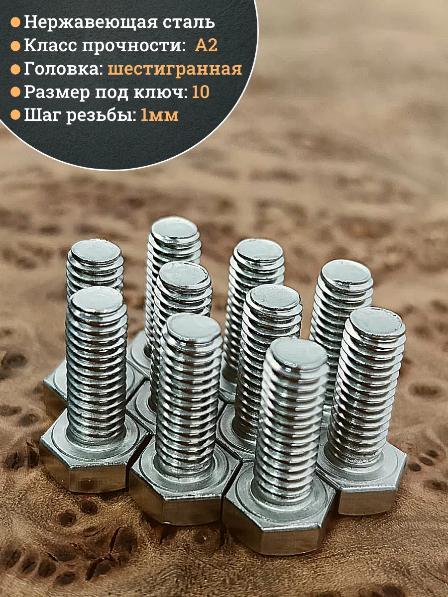 Болт нержавеющий 10х100 мм DIN933 10шт