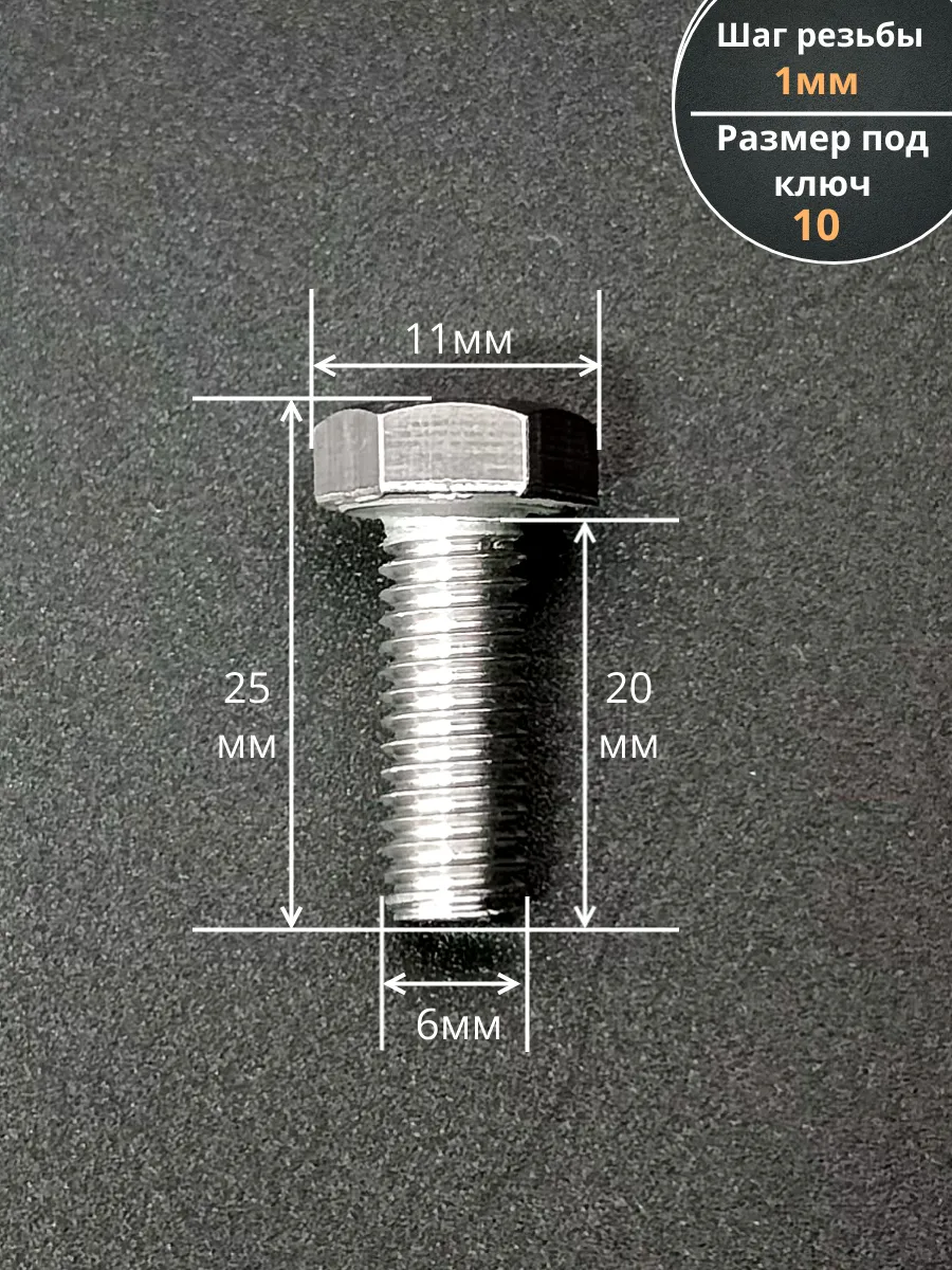 Болт нержавеющий 6х20 мм DIN933 со стоп гайкой и шайбой,10шт