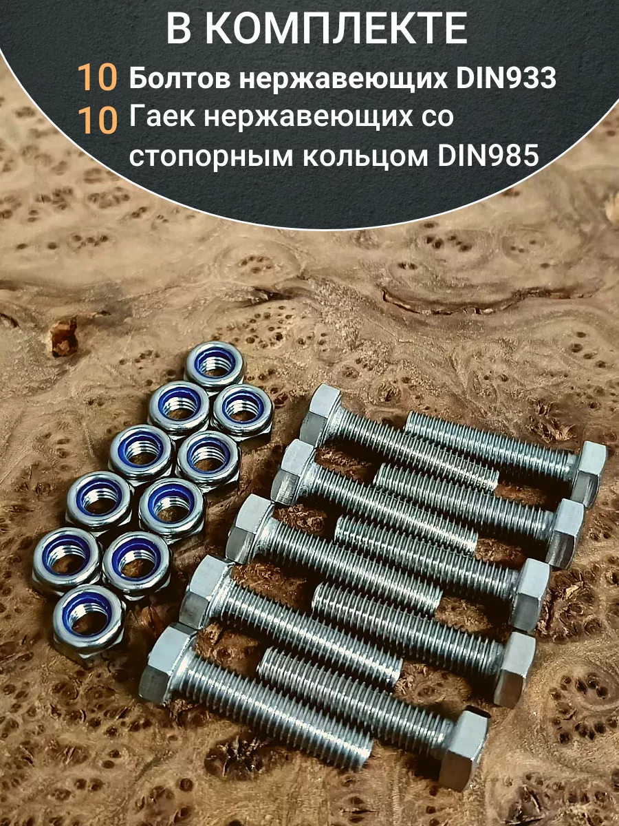 Болт нержавеющий 6х35 мм DIN933 со стоп гайкой,10шт