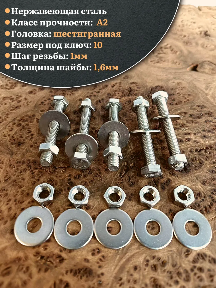 | Болт нержавеющий 6х50 мм DIN933 с гайкой и шайбой, 10шт. | 33337 | 1 шт. |