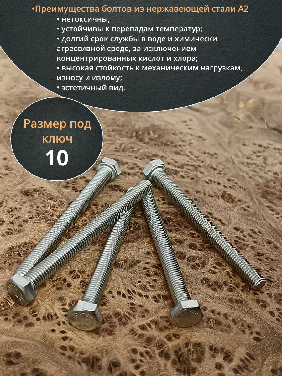 | Болт нержавеющий 6х70 мм DIN933 10шт | АС1300607092G07 | 1 шт. |
