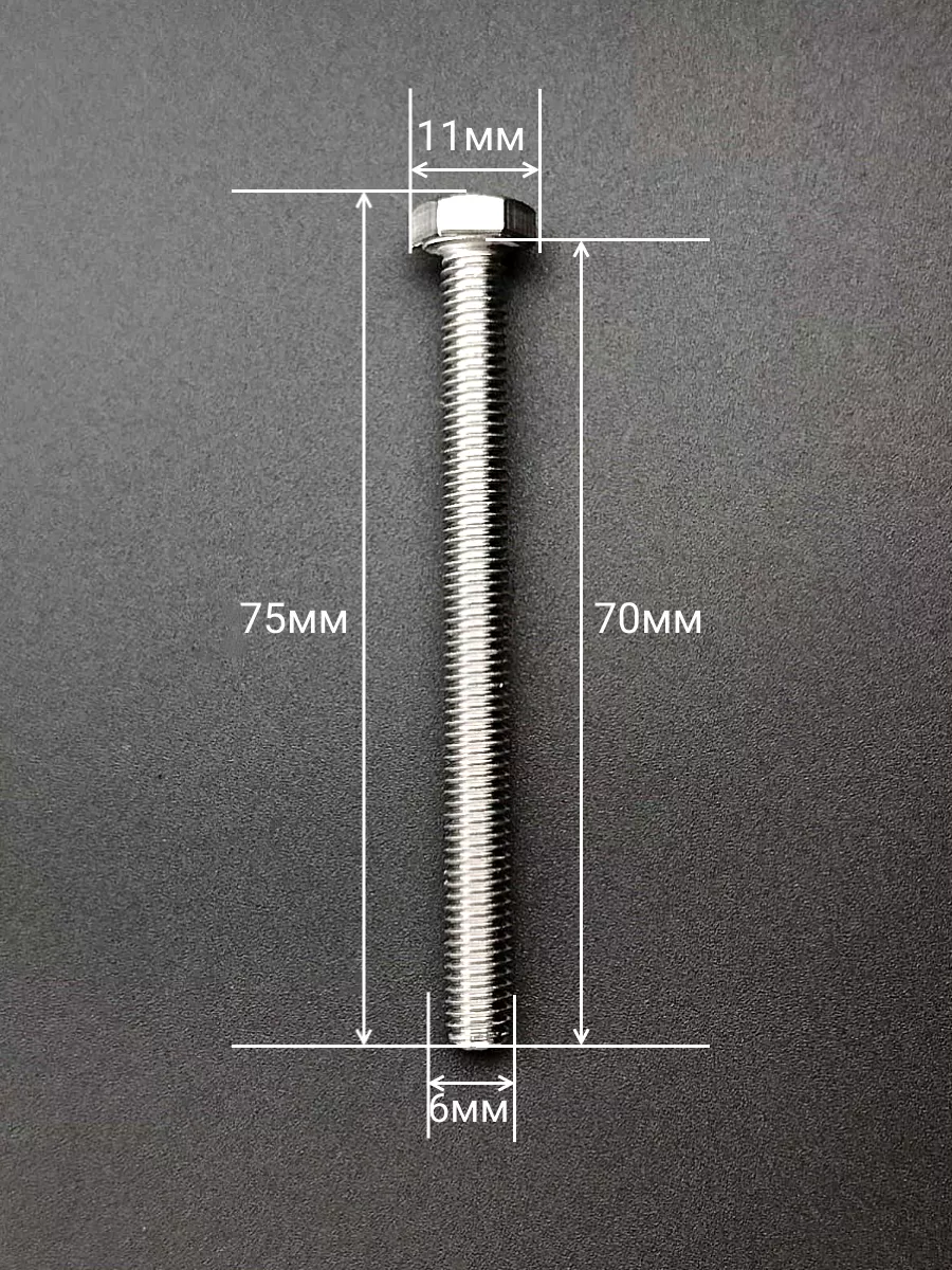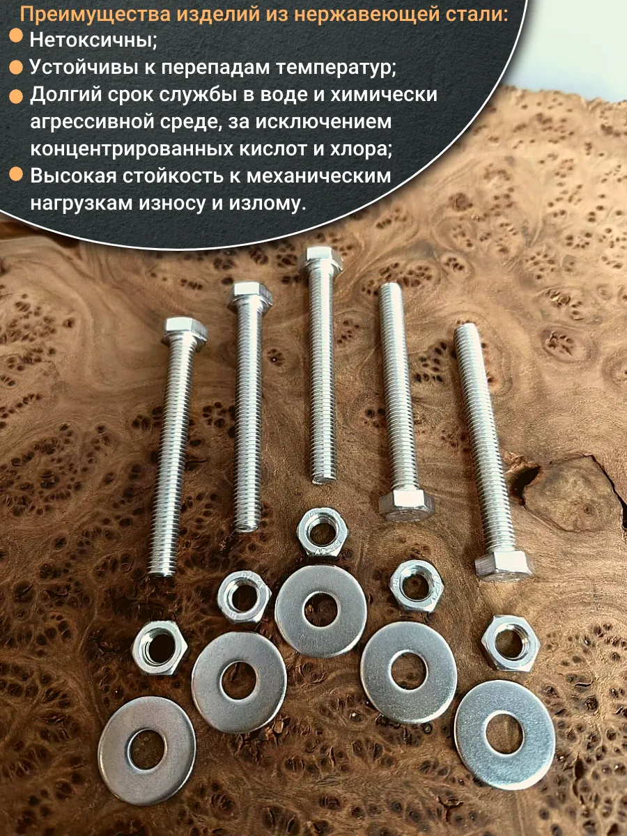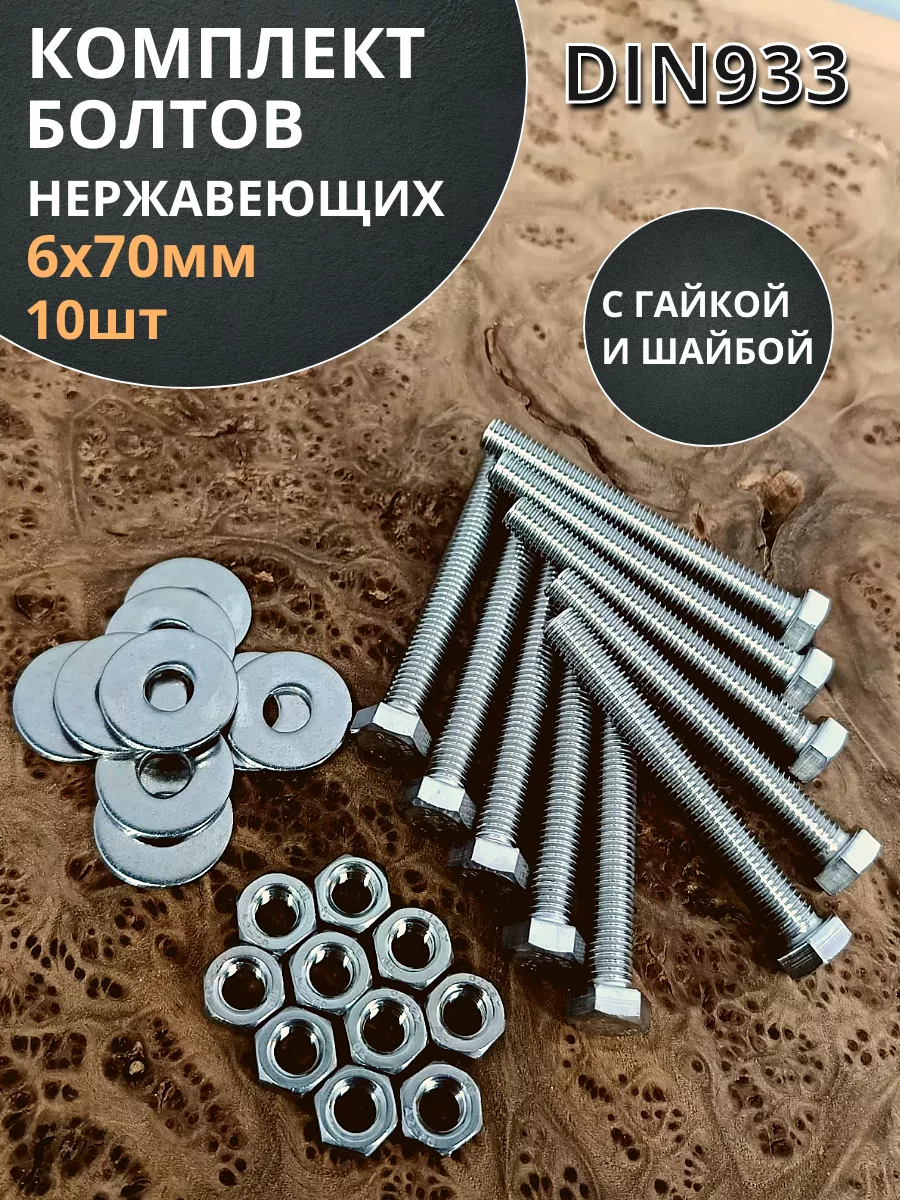 Болт нержавеющий 6х70 мм DIN933 с гайкой и шайбой