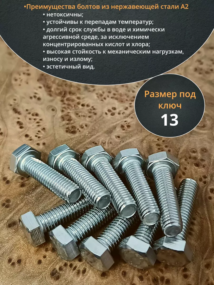 Нержавеющая сталь данной марки повышает прочность болта, который выдерживает динамические усилия и вибрацию. Изделие монтируют в помещениях и вне их. Крепеж имеет практически неограниченный ресурс работы, на который не влияет воздействие воды и изменений температуры воздуха.
