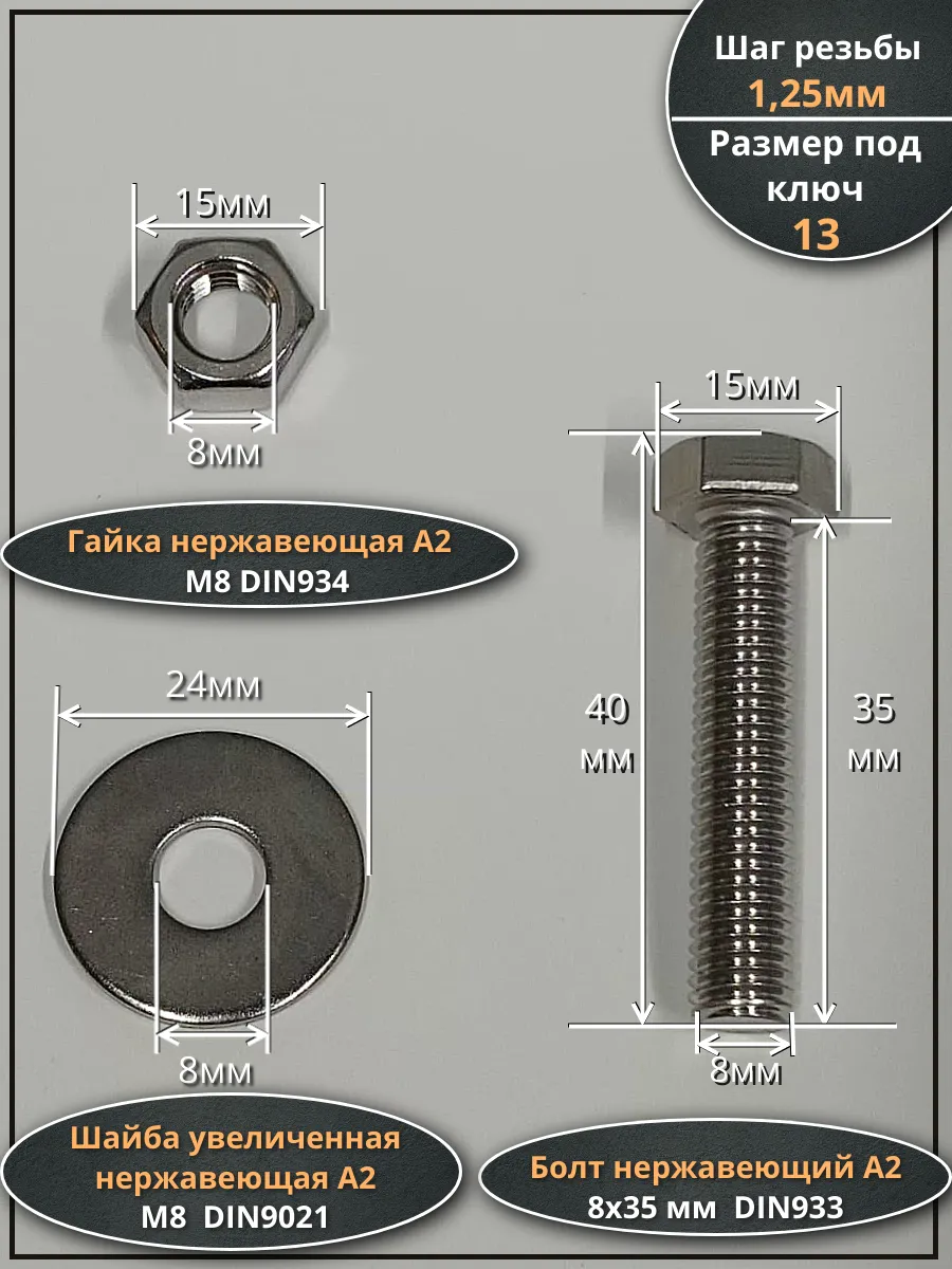 | Болт нержавеющий 8х35 мм DIN933 с гайкой и шайбой, 10шт. | 33342 | 1 шт. |