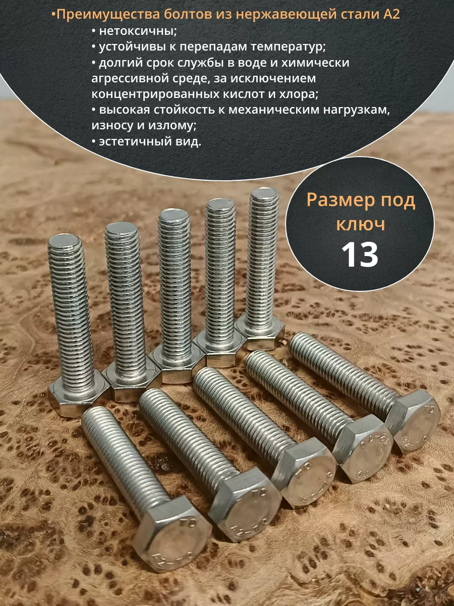 Болт нержавеющий 8х60 мм DIN933 10шт