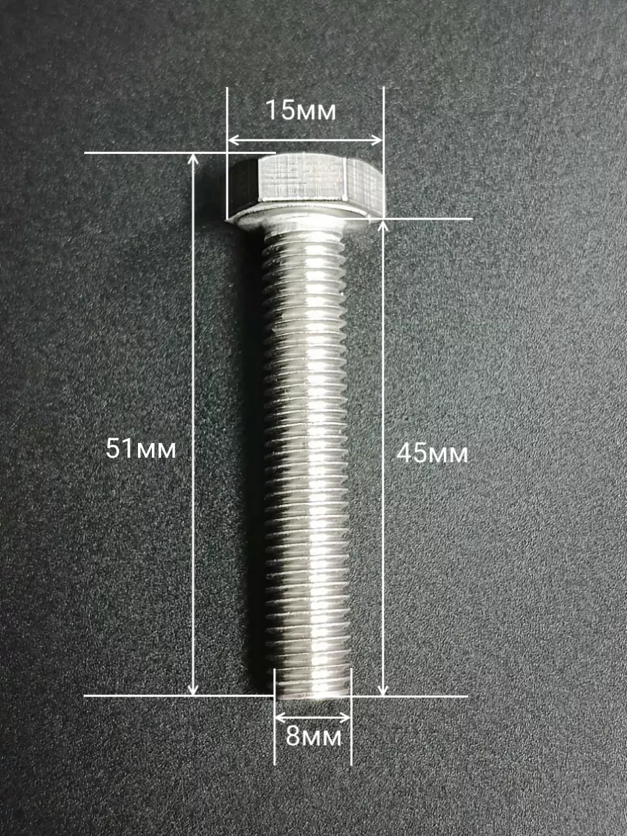 Болт нержавеющий 8х45 мм DIN933 со стоп гайкой и шайбой,10шт