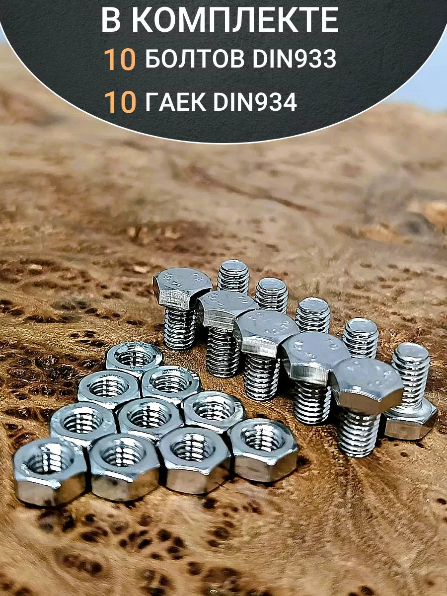 Болт нержавеющий М3х8 мм DIN 933 с гайкой , 10 шт.