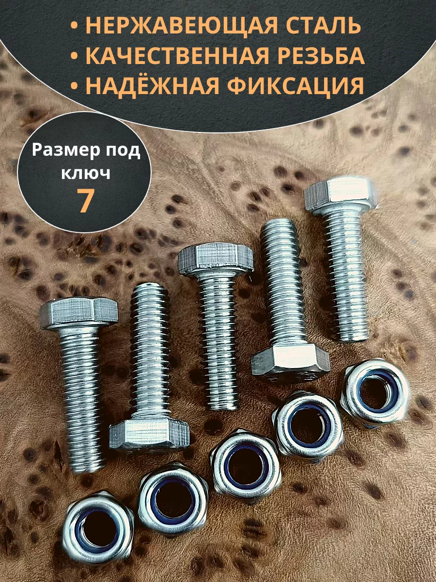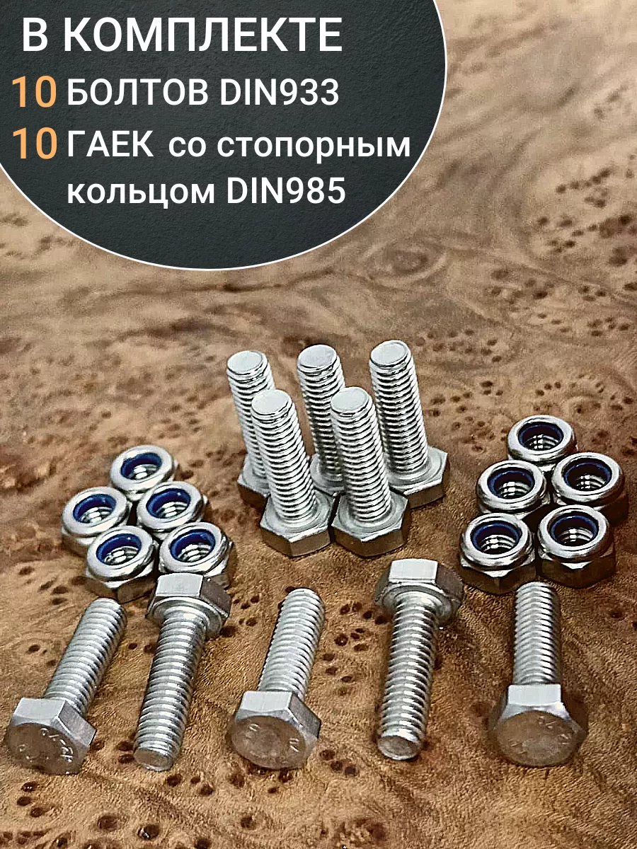 Болт нержавеющий М4х14 мм DIN 933 с гайкой , 10 шт.