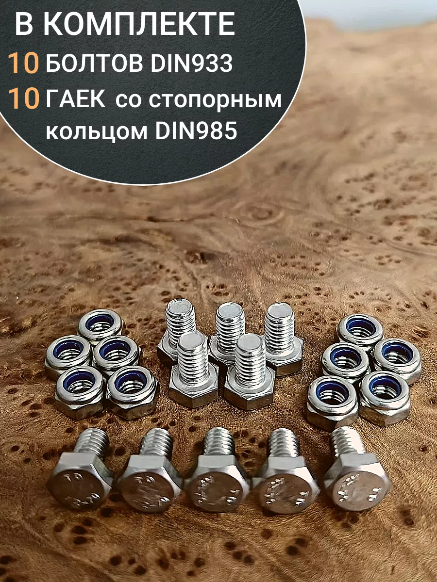 Болт нержавеющий М4х6 мм DIN 933 с гайкой , 10 шт.