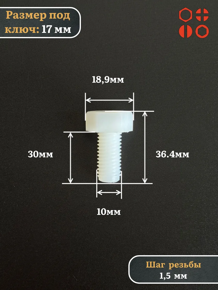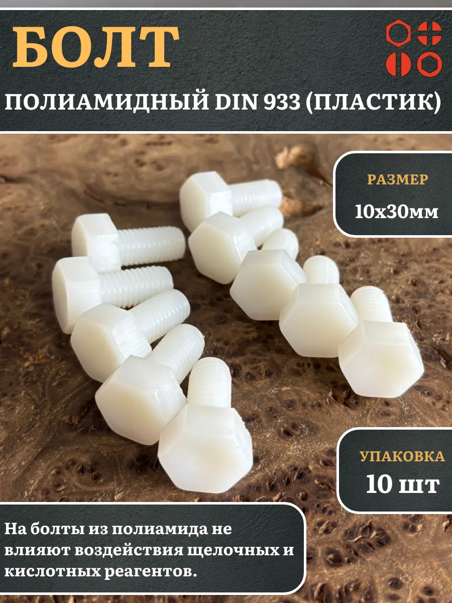 Болт полиамидный 10х30 мм DIN 933 (пластик), 10 шт.