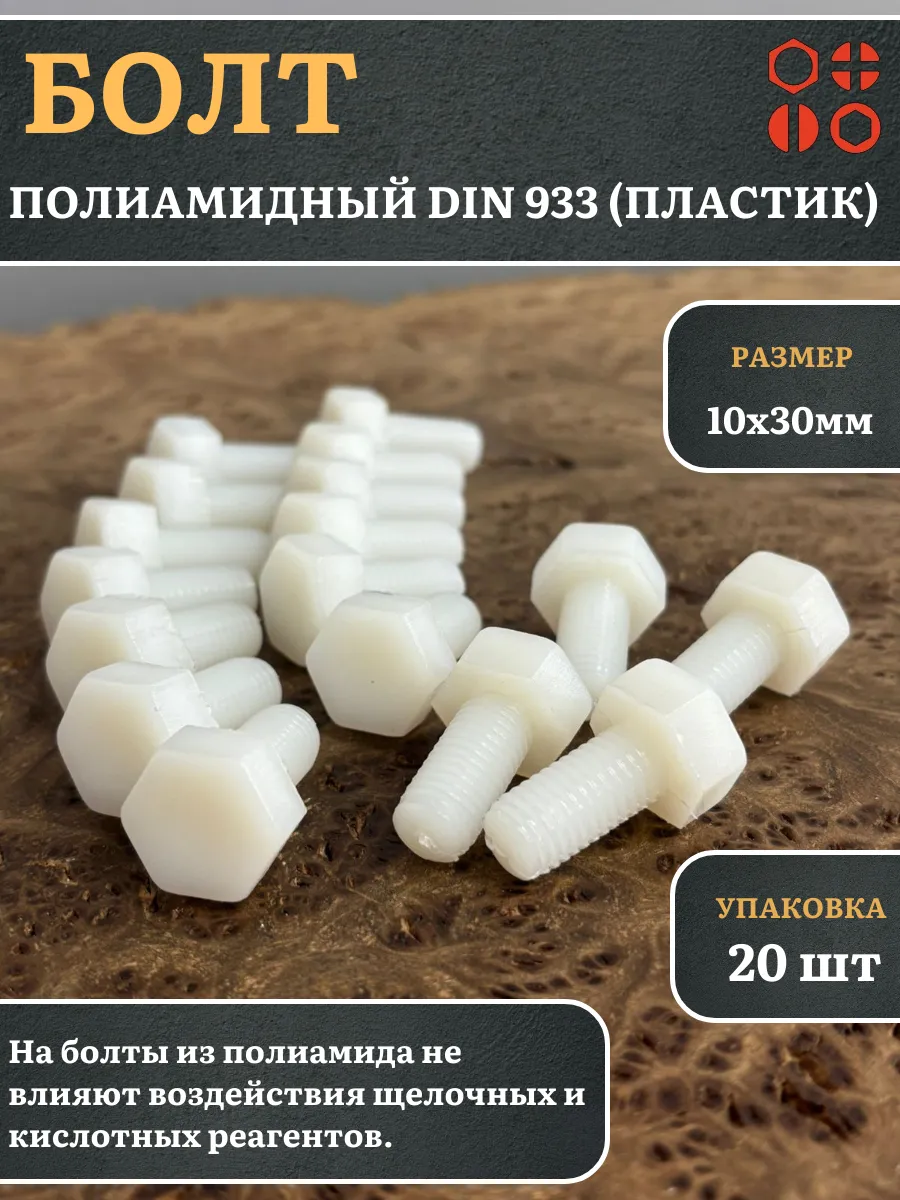 Болт полиамидный 10х30 мм DIN 933 (пластик), 10 шт. бп1030933ф10 1 шт.