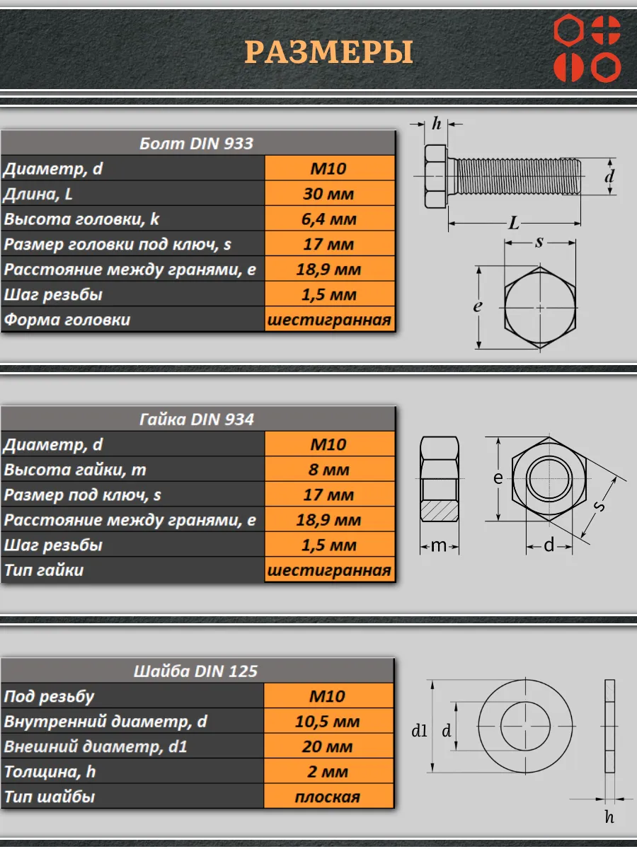 | Болт полиамидный 10х30 мм DIN 933 с гайкой и шайбой, по 10 шт. | бп1030933наборГШф10 | 1 шт. |