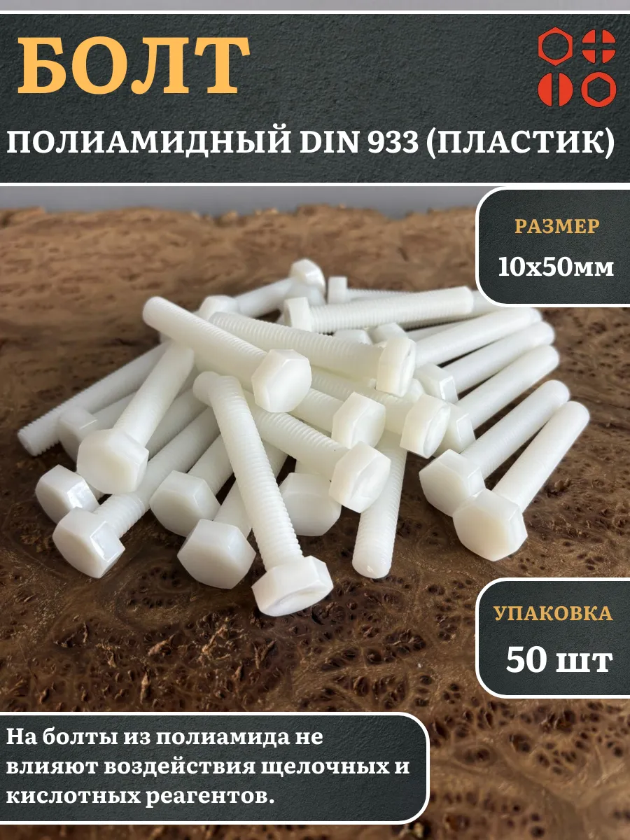 Болт полиамидный 10х50 мм DIN 933 (пластик), 10 шт. бп1050933ф10 1 шт.