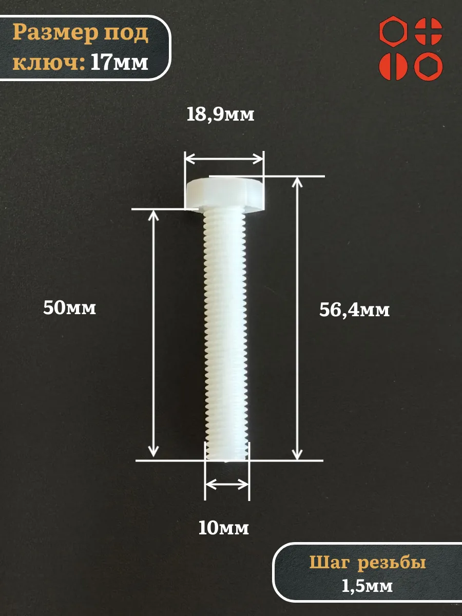 Болт полиамидный 10х50 мм DIN 933 (пластик), 4 шт. бп1050933ф4 1 шт.