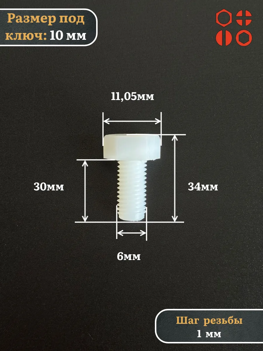 Болт полиамидный 6х30 мм DIN 933 (пластик), 10 шт.