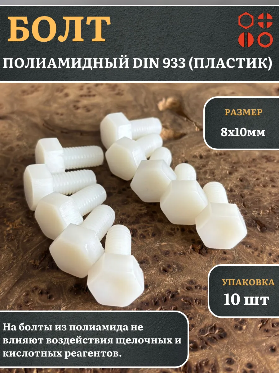 | Болт полиамидный 8х10 мм DIN 933 (пластик), 50 шт. | бп810933ф50 | 1 шт. |