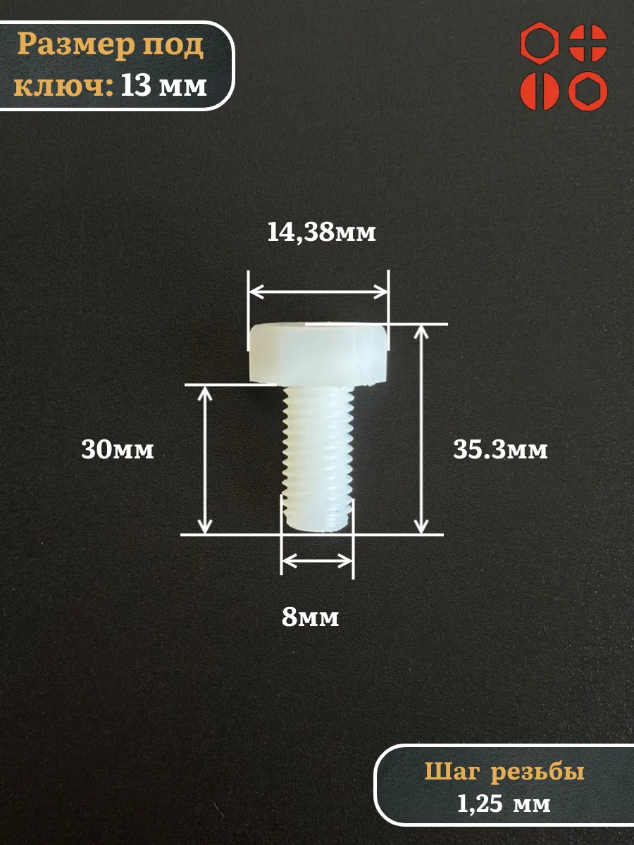 Болт полиамидный 8х30 мм DIN 933 (пластик), 20 шт.