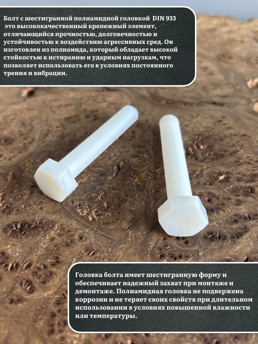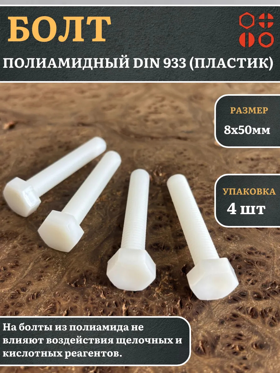 Болт полиамидный 8х50 мм DIN 933 (пластик), 4 шт.