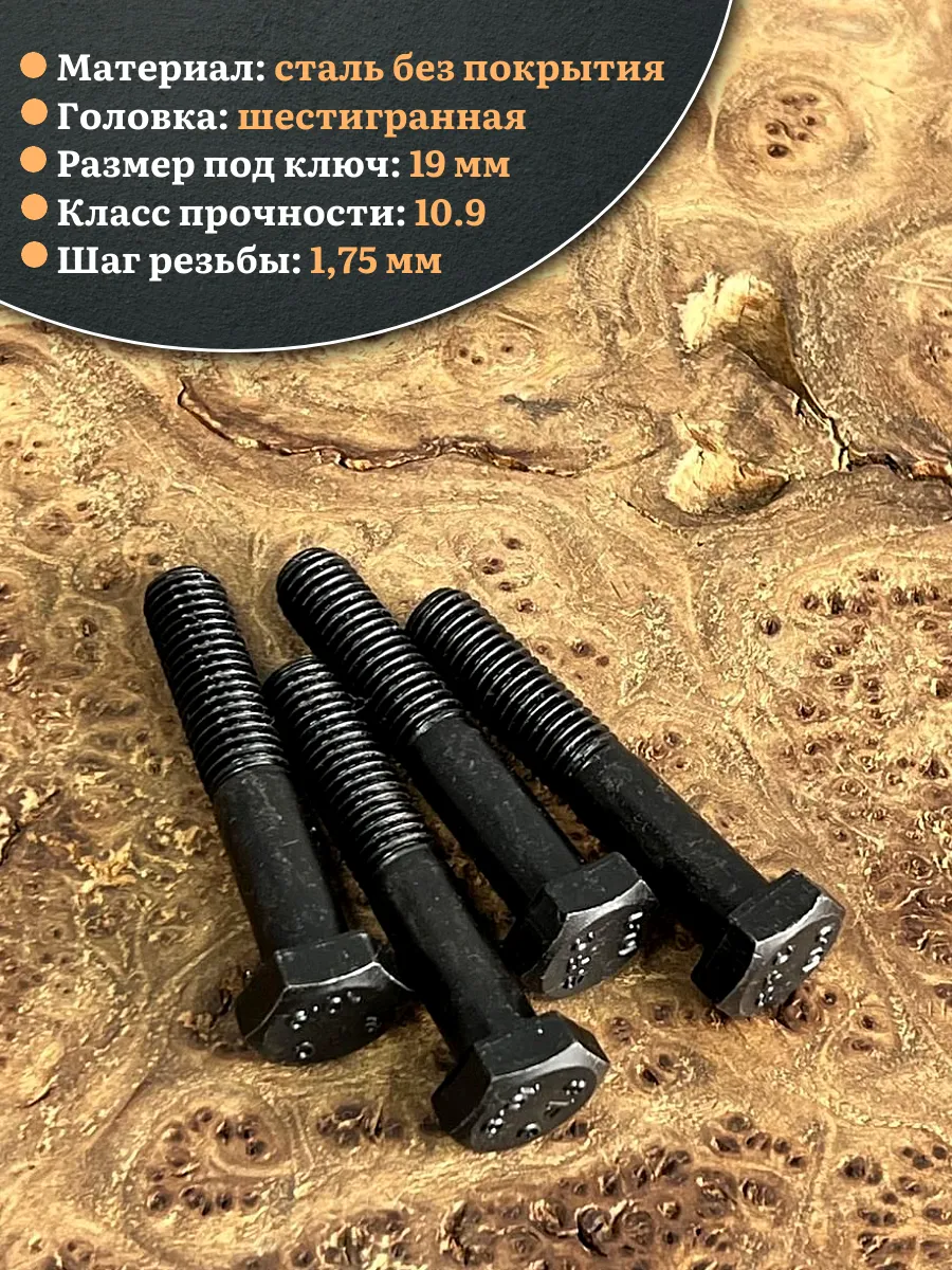 Болт высокопрочный чёрный 12х45 мм, к.п.10.9 DIN931,4 шт.