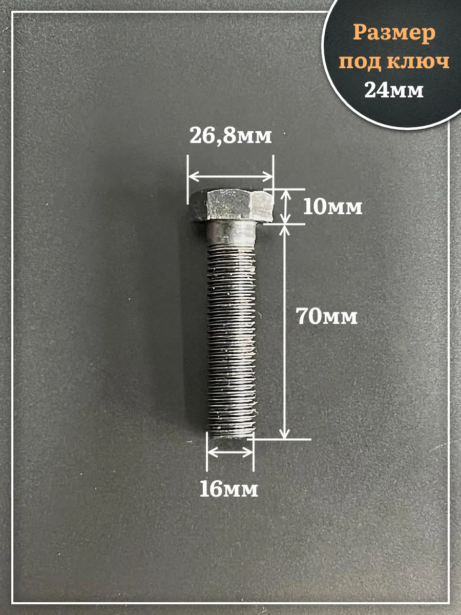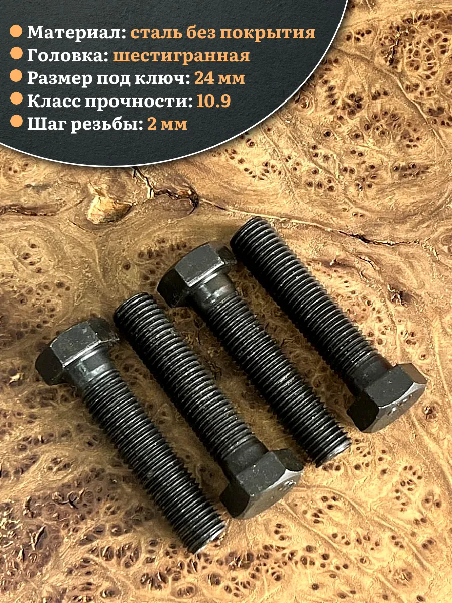 Болт высокопрочный чёрный 16х70 мм, к.п.10.9 DIN931, 4 шт.