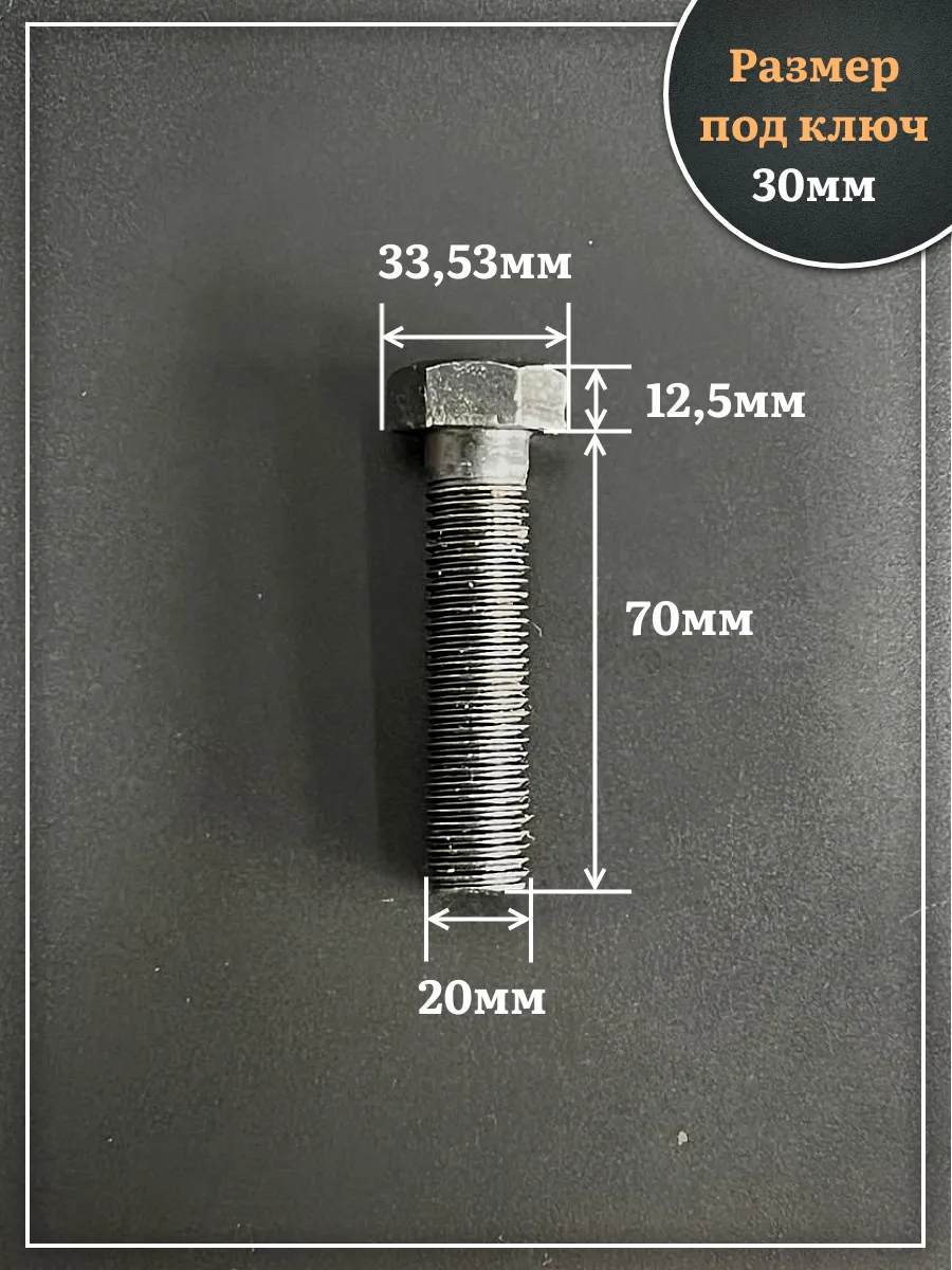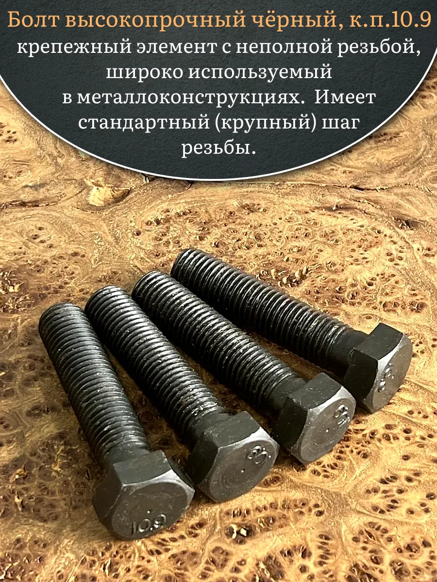 Болт высокопрочный чёрный 20х70 мм, к.п.10.9 DIN931, 4 шт.