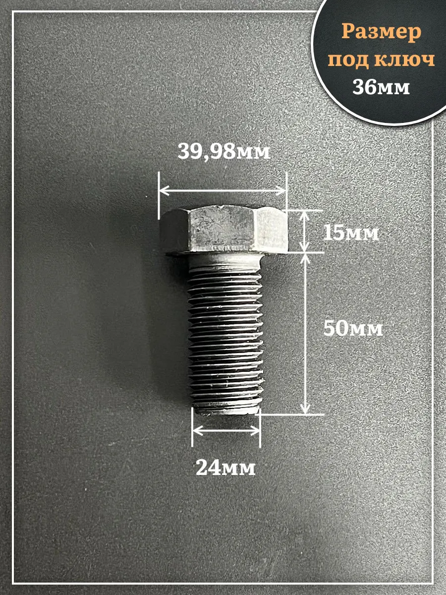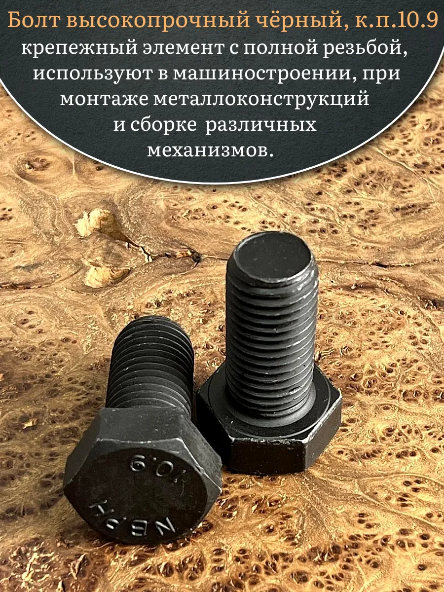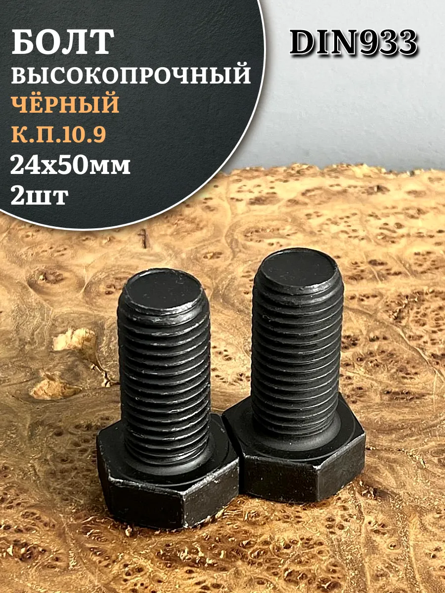 Болт высокопрочный чёрный 24х50 мм, к.п.10.9 DIN933, 2 шт.