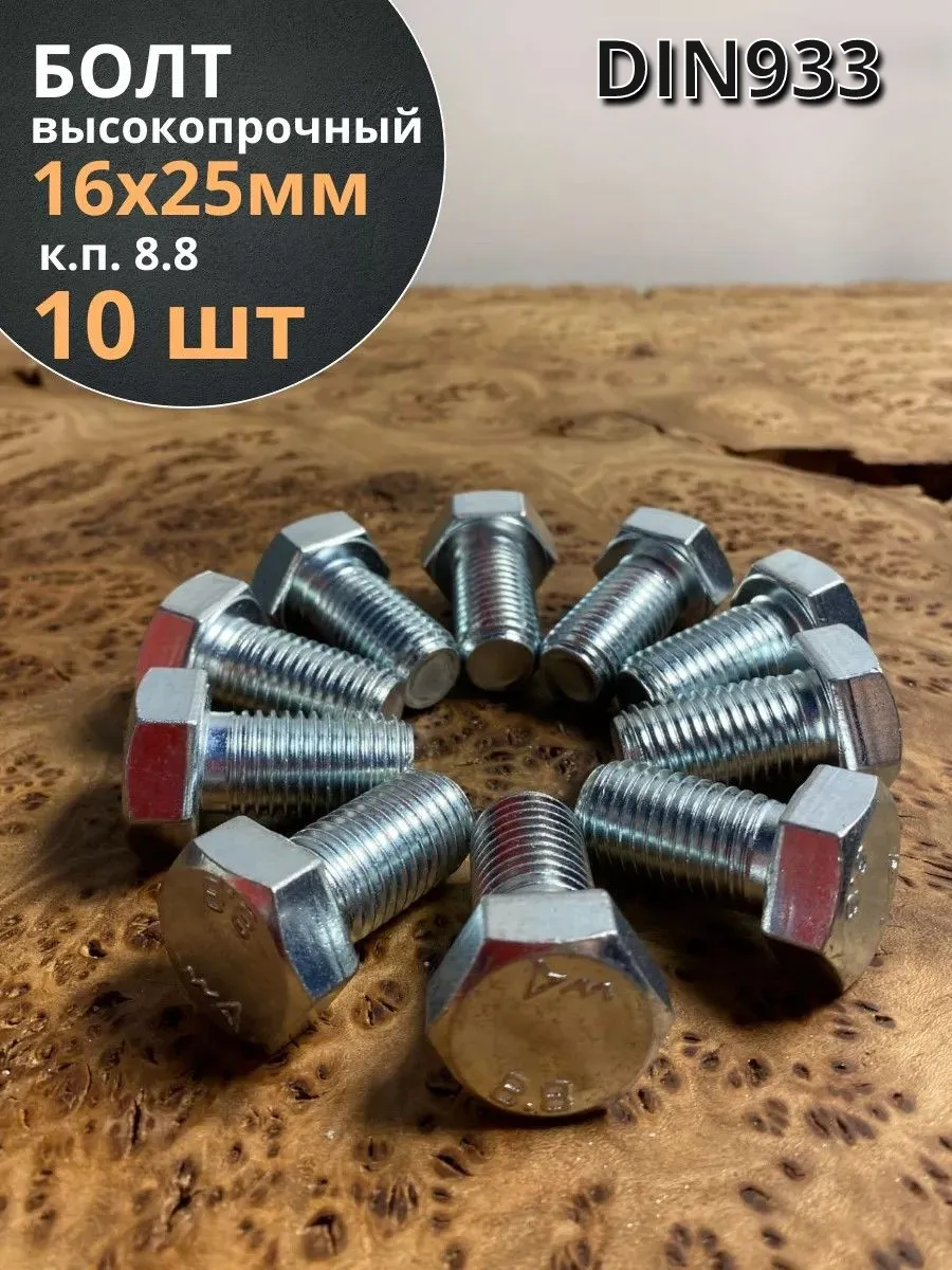 Болт высокопрочный М16х25 ОЦ к.п.8.8 DIN933 (10 шт.)