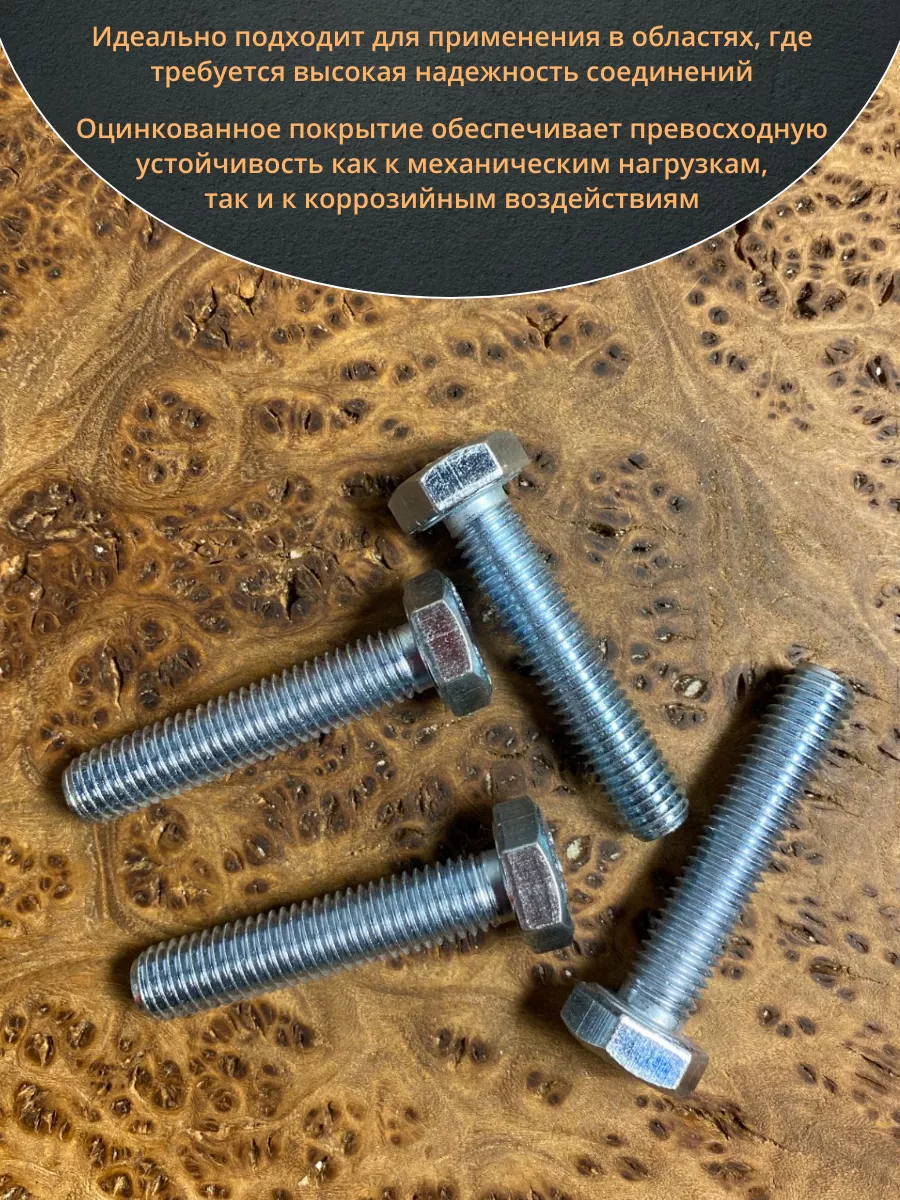 Болт с полной резьбой применяется в легких конструкциях либо, где действует нагрузка, направленная вдоль стержня крепежа. Болт устанавливается в одну конструкцию и фиксирует другую за счет плотно насаженной гайки. Полная резьба болта позволяет применять его при различных размерах скрепляемых элементов. Болт, класс прочности которого 8.8, 10.9 или 12.9 относится к высокопрочным изделиям. Болтовое соединение является очень надежным, что особенно важно при скреплении металлических конструкций. Имеет достаточный антикоррозионный защитный слой. Болт стальной ГОСТ 7798 из стали с классом прочности 10.9 используют при сборке автомобилей, сельскохозяйственной техники и для монтажа трубопроводов. Широко используется на мебельных фабриках и на строительных площадках. Данную модель болта изготавливают из стали с классом прочности 10.9. Он имеет полную резьбу (на всю длину стержня) и шестигранную головку. Диаметр метрической резьбы варьируется от М6 до М48. Материал основания: Сталь, метал, дерево