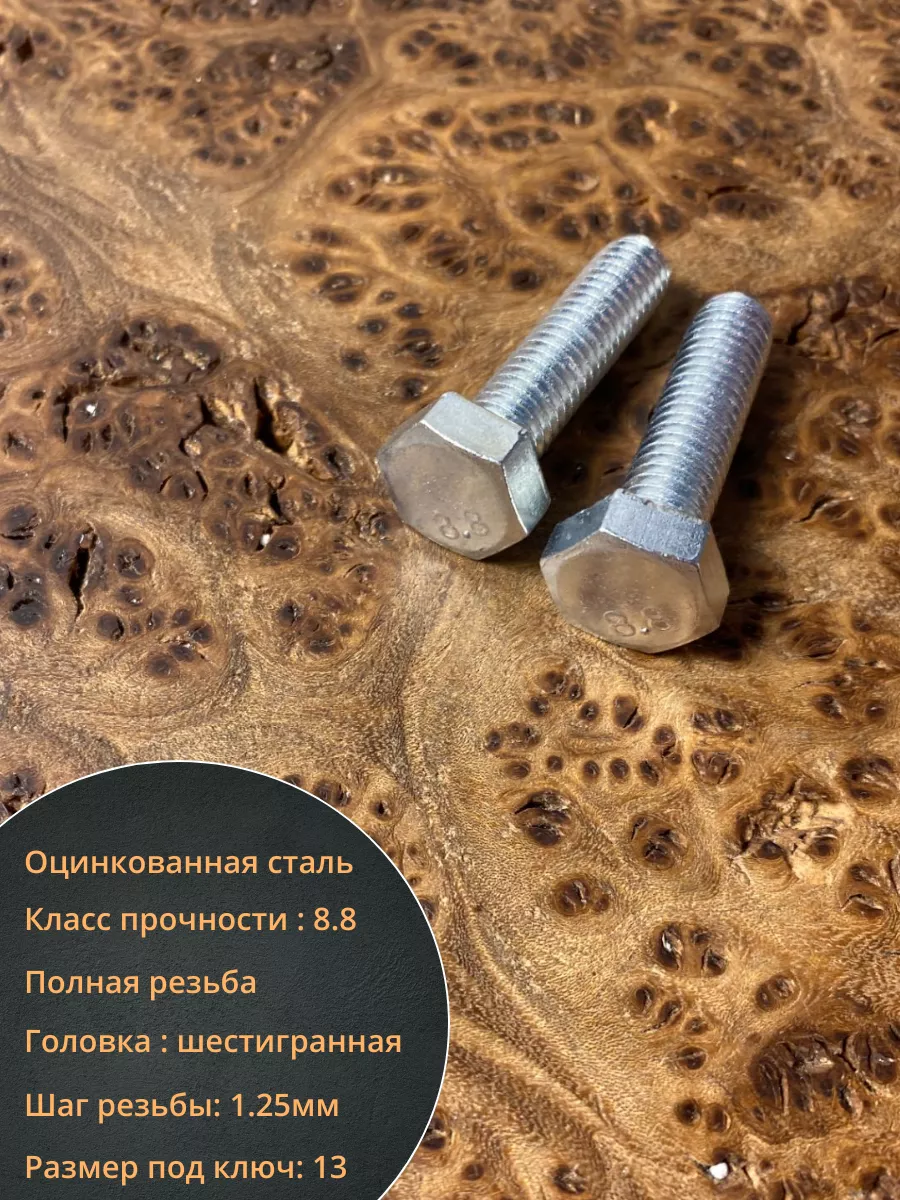 Болт, характеризующийся прочностью класса 8.8 – относится к категории высокопрочного крепежа. Данная продукция используется во многих сферах промышленного производства, для скрепления компонентов крановых конструкций, строительства мостовых пролетов, создания ж/д путей. На стержень болта может наноситься резьба одного из двух типов – полная (по всей длине стержня), либо неполная (на его части.). Шестигранная головка бывает различных размеров. Для производства применяется углеродистая сталь, в которую добавляются бор, марганец или хром либо подвергаются обработке цинком. Материал: Оцинкованная сталь 8.8