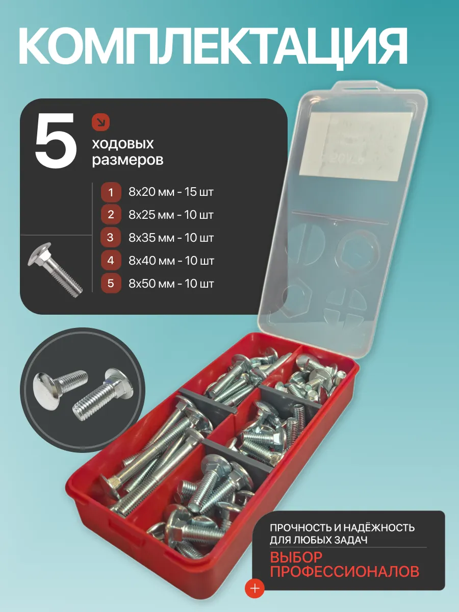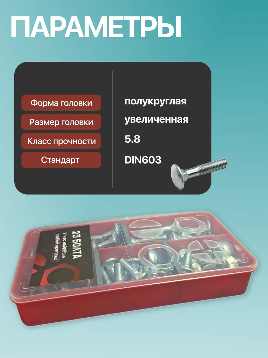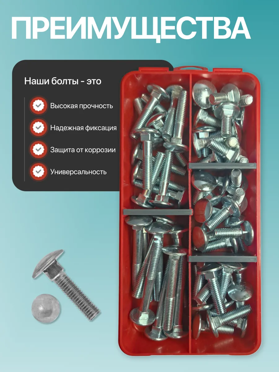 Болты мебельные М8 ОЦ DIN 603 в органайзере НАБОР 1