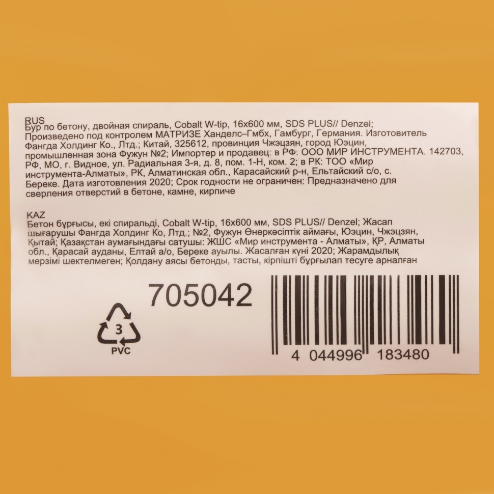 Бур по бетону Denzel арт. 705042 с хвостовиком SDS PLUS и двойной спиралью предназначен для сверления бетона, кирпича и камня. Он используется в качестве оснастки для перфораторов с патроном SDS Plus. Бур оптимален для проведения строительных, ремонтных, монтажных работ. Преимущества Продуманная конструкция — режущая твердосплавная пластина из стали ВК8 80-90 HRC с W-образной заточкой имеет высокий ресурс и способна сверлить отверстия до 30% быстрее, в том числе при работе с камнем. Прочность и износостойкость — рабочая часть из легированной стали 40Х выдерживает интенсивные и длительные ударные нагрузки, а также делает бур самым высокопроизводительным среди аналогов средней цены. Двойная спираль и канавка с дополнительным желобом — за счет более эффективного отвода шлама рабочая часть не перегревается, такая разработка позволяет продлить срок службы бура. Высокая технологичность — буры Denzel изготавливаются на производстве MAKITA, что гарантирует их качество и эффективность сверления. Бур поставляется в у