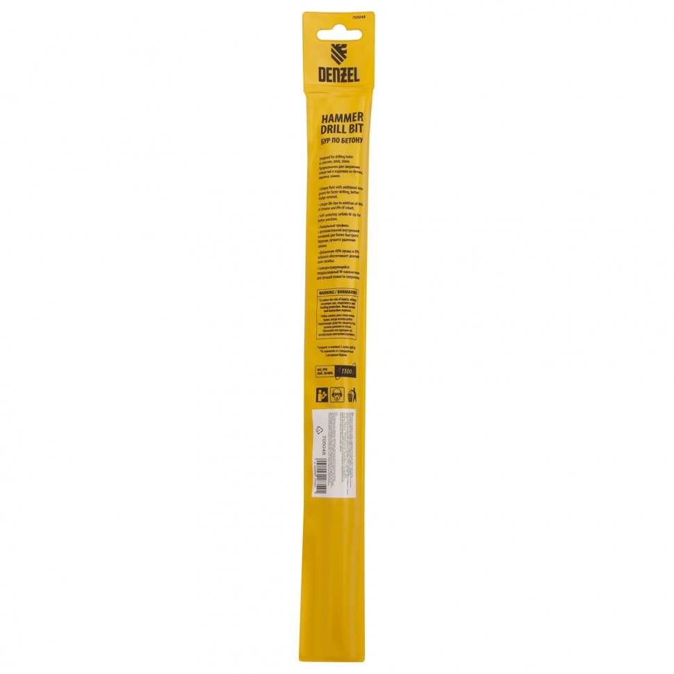 Бур по бетону Denzel арт. 705048 с хвостовиком SDS PLUS и двойной спиралью предназначен для сверления бетона, кирпича и камня. Он используется в качестве оснастки для перфораторов с патроном SDS Plus. Бур оптимален для проведения строительных, ремонтных, монтажных работ. Преимущества Продуманная конструкция — режущая твердосплавная пластина из стали ВК8 80-90 HRC с W-образной заточкой имеет высокий ресурс и способна сверлить отверстия до 30% быстрее, в том числе при работе с камнем. Прочность и износостойкость — рабочая часть из легированной стали 40Х выдерживает интенсивные и длительные ударные нагрузки, а также делает бур самым высокопроизводительным среди аналогов средней цены. Двойная спираль и канавка с дополнительным желобом — за счет более эффективного отвода шлама рабочая часть не перегревается, такая разработка позволяет продлить срок службы бура. Высокая технологичность — буры Denzel изготавливаются на производстве MAKITA, что гарантирует их качество и эффективность сверления. Бур поставляется в у