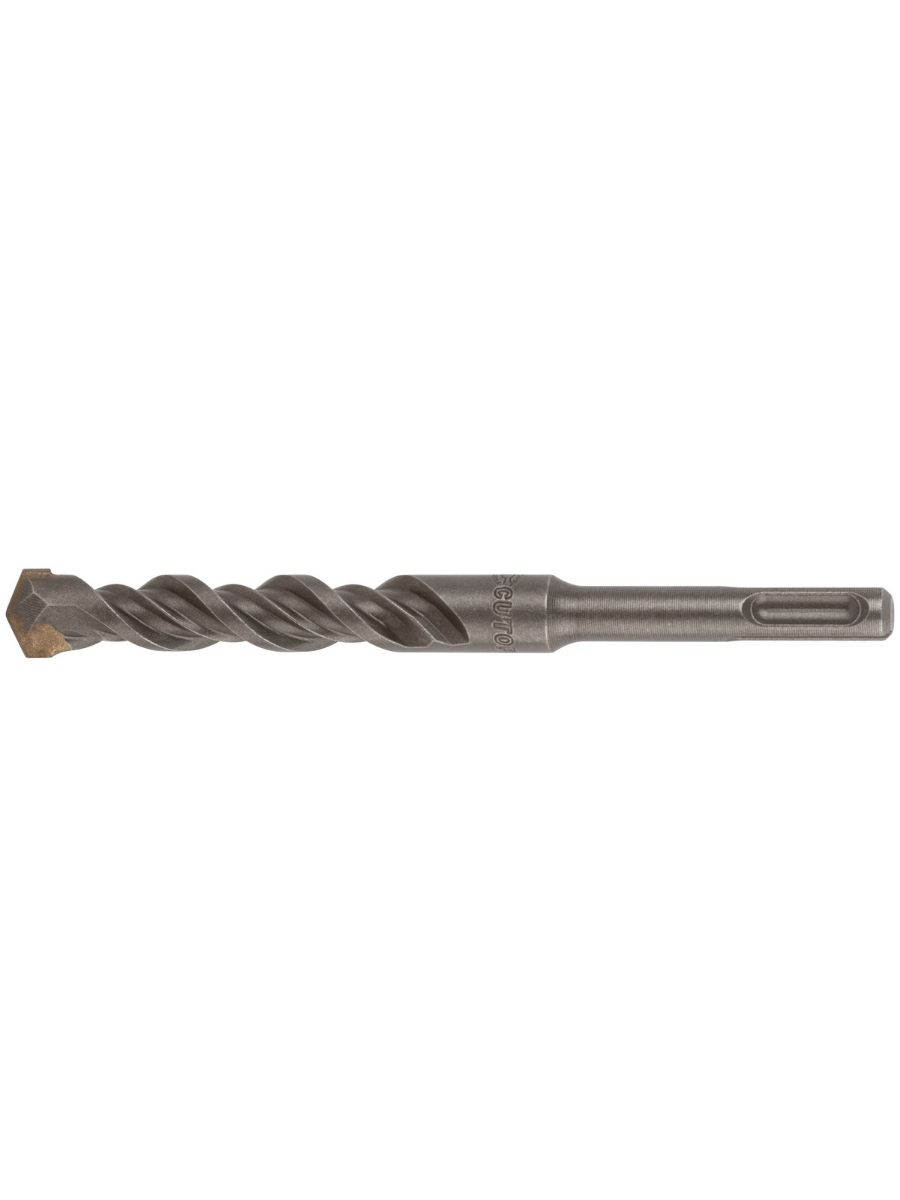 SDS-PLUS хвостовик. Карбидный наконечник повышенной плотности с добавлением кобальта 8% гарантирует длительную работу бура без изменения диаметра. Двойная спираль сохраняет постоянную скорость бурения. Легированная инструментальная сталь с добавлением хрома увеличивает износостойкость бура к истиранию.