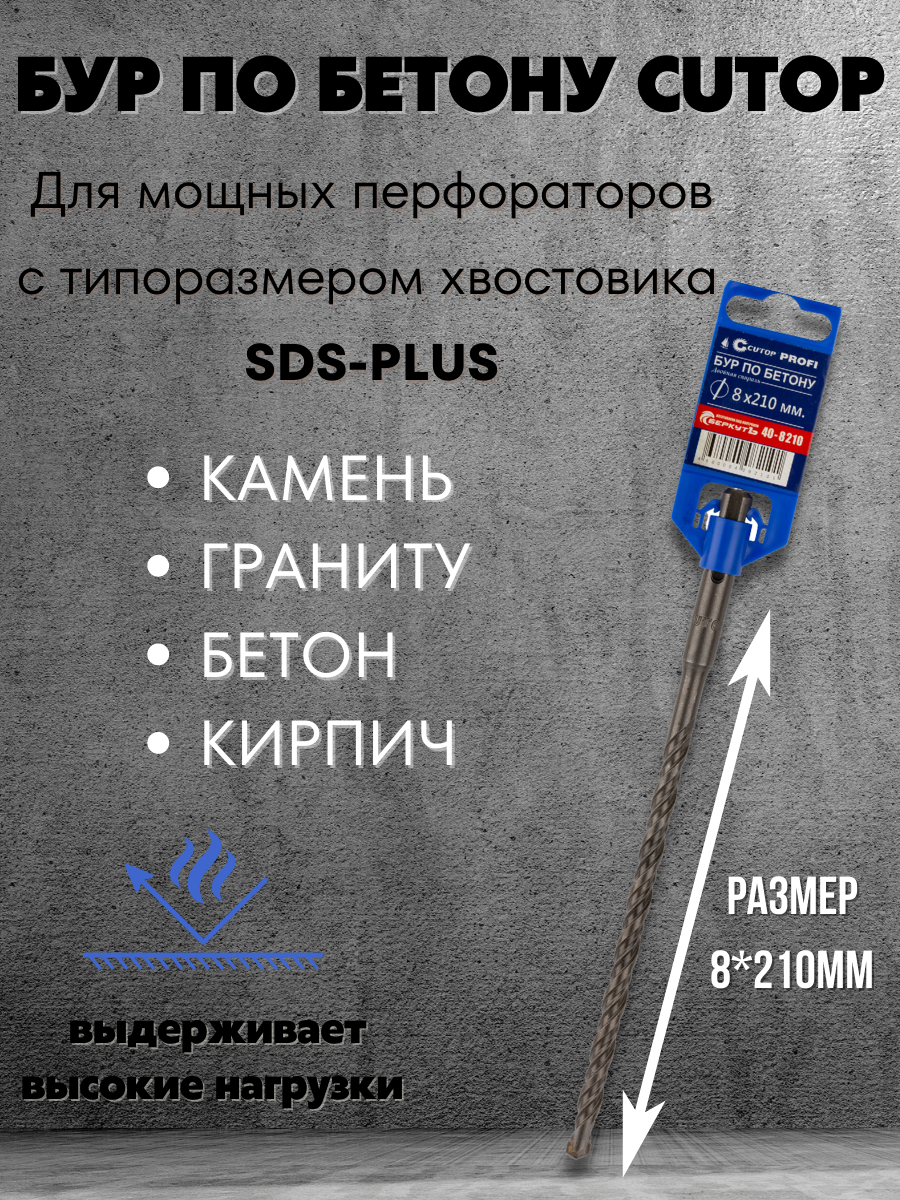 Подходит для бурения бетона, камня, гранита и кирпича.