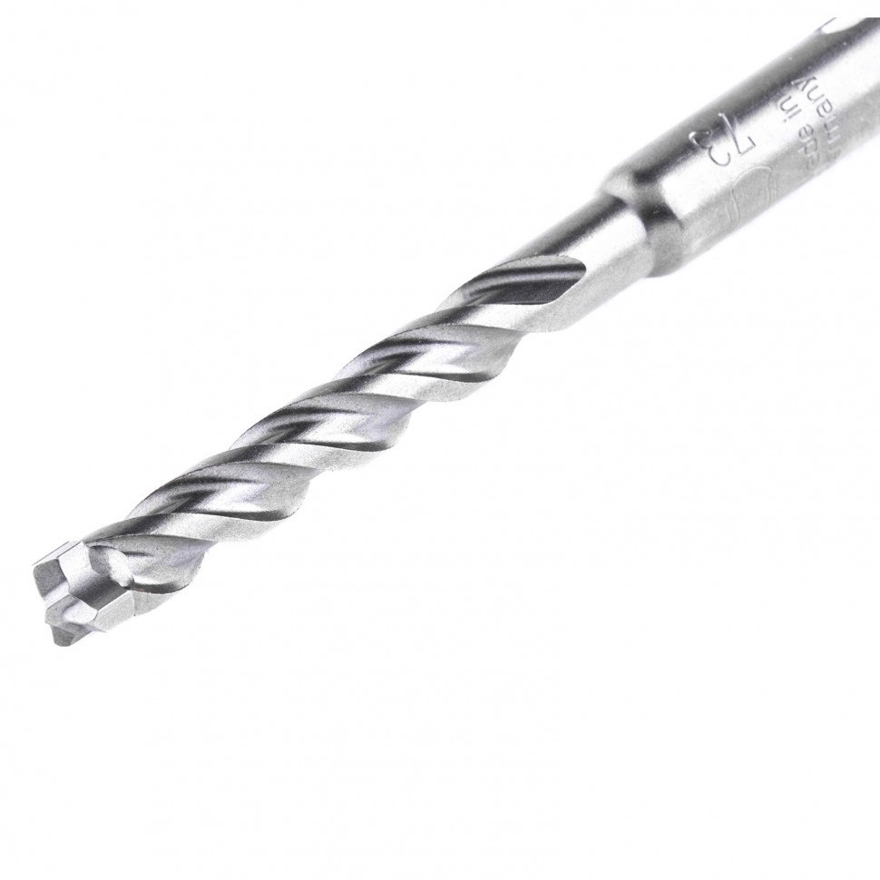 Бур по бетону Gross DREI SPITZEN арт. 70733, 8 x 115 мм, применяется для получения отверстий диаметром 8 мм в железобетонных, кирпичных, каменных конструкциях. Он эффективно справляется как с высокоармированными видами бетона, так и с хрупкими материалами благодаря твердосплавной пластине с режущими кромками ломаной формы. Бур совместим с перфораторами SDS Plus.ПреимуществаРабочая часть со спиралью и канавкой изготовлена из легированной инструментальной стали с добавлением хрома (40Х), поэтому устойчива к высоким нагрузкам, в том числе изгибающим.Для производства твердосплавной режущей пластины использован один из наиболее твердых сплавов стали ВК8 80-90 HRC, а сделана она мировым лидером — компанией CERATIZIT.Запатентованная трехкромочная конструкция режущей пластины защищает бур от повреждений при попадании в арматуру, а также позволяет удерживать его на заданной оси — это позволяет получить ровное отверстие и повышает качество работ.Пластина припаяна к телу бура встык — такое решение обеспечивает беспрепят