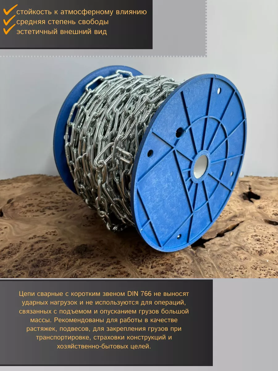 Цепь короткое звено d5 30 м стальная ОЦ DIN766