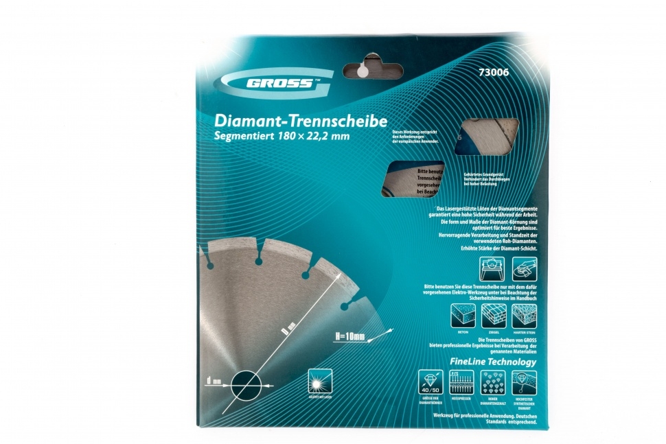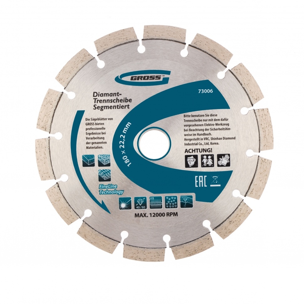 Диск алмазный лазерная приварка сегментов сухое резание 180х22,2 мм Gross