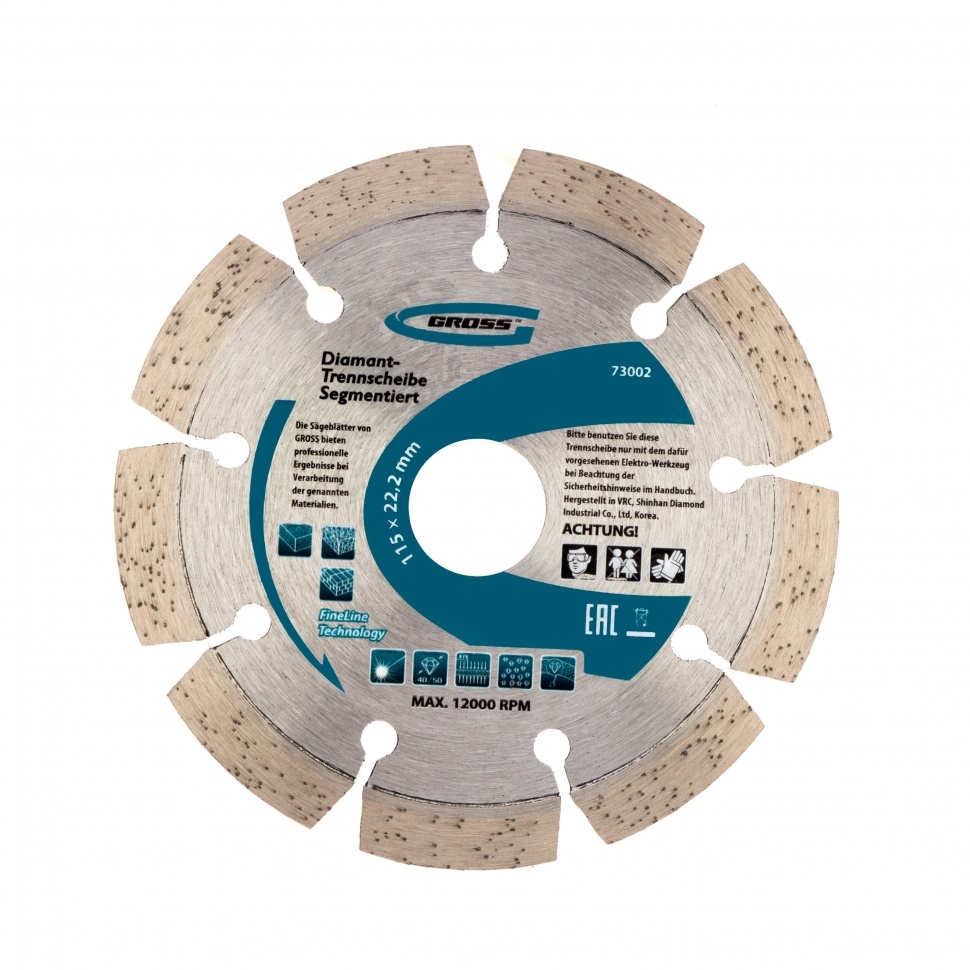 Алмазный диск Gross ф115х22,2 мм 730027 с лазерной приваркой турбо-сегментов предназначен для сухого резания бетона, в том числе свежего, слабоармированного железобетона, кирпича, песчаника и гранита. Посадочный диаметр 22,2 мм позволяет использовать диск в качестве расходного инструмента для УШМ. Турбо-сегменты обеспечивают быстрое сухое резание без необходимости водяного охлаждения. За счет оптимально подобранной связки диск выдерживает перегрузки и подходит как для интенсивного бытового, так и для профессионального применения, когда требуется выполнить большой объем работ.Преимущества Турбо-сегментная форма &mdash диск универсален по своему применению, позволяет быстро резать материалы, в т.ч. слабоармированный бетон без риска деформации. Лазерная приварка турбо-сегментов &mdash режущий алмазный слой прочно фиксируются на корпусе, такая технология изготовления гарантирует надежность диска и высокую стойкость к нагрузкам. Ширина алмазного слоя 10 мм &mdash диск гарантирует высокую производительность выполня